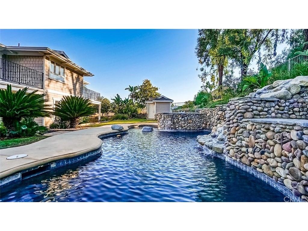 Huge price reduction – priced to sell – no mello-roos!!! Experience luxurious resort-like lifestyle in your own backyard! This stunning custom home is located in the western hills estates, one of the most prestigious areas in chino hills, with breathtaking canyons and city lights views. It boasts approx. 5,220 sq ft of living space on approx. 18,375 sq ft lot. 5 bedrooms, 4.5 bathrooms, plus office/bonus room on the main floor and a huge great room/loft on the 2nd floor (1 bedroom + 1.5 bathrooms on the main floor). How does one even begin to describe the features and upgrades on this gorgeous home? To name some: custom pool with natural rocks, spa & waterfall feature; pool house with provision for possible outdoor shower; koi pond; high ceiling on the formal entry; dual staircases; 3 fireplaces; gourmet kitchen with high end built-ins & stainless steel appliances; walk-in pantry; solid wood sweeping bar; library; dressing area; master suite has a spacious balcony overlooking the pool & backyard areas, large walk-in closet, retreat area, master bathroom with separate toilet, walk-in shower & large bathtub; formal dining; separate family room; and too many other features & upgrades to mention. With so much impeccable details, premium materials and luxurious upgrades, one must see this elegant entertainment-delight gem to appreciate. Even the most meticulous buyer will be absolutely impressed!